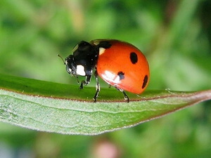 Двухточечная. Это пятимиллиметровый жук темно-красной расцветки с двумя большими пятнами черного цвета.- Семиточечная. Такие жуки наиболее распространены на всей территории Европы. Их размер около 7 миллиметров. Надкрылья красные и у их основания находится два белых пятна. Одно черное пятно располагается на переднеспинке, на каждом надкрылье по три точки.