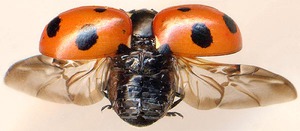 Окраска надкрыльев божьей коровки может быть разной и расцветка напрямую зависит от разновидности насекомого. Так, цвет надкрыльев божьей коровки бывает: