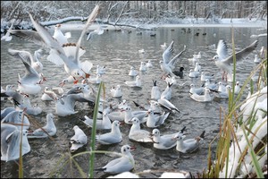 В России целые колонии речных чаек, размер которых может быть в несколько тысяч, можно увидеть летом на пресноводных водоёмах. Обычно птицы селятся вблизи пищевых свалок и крупных городов.